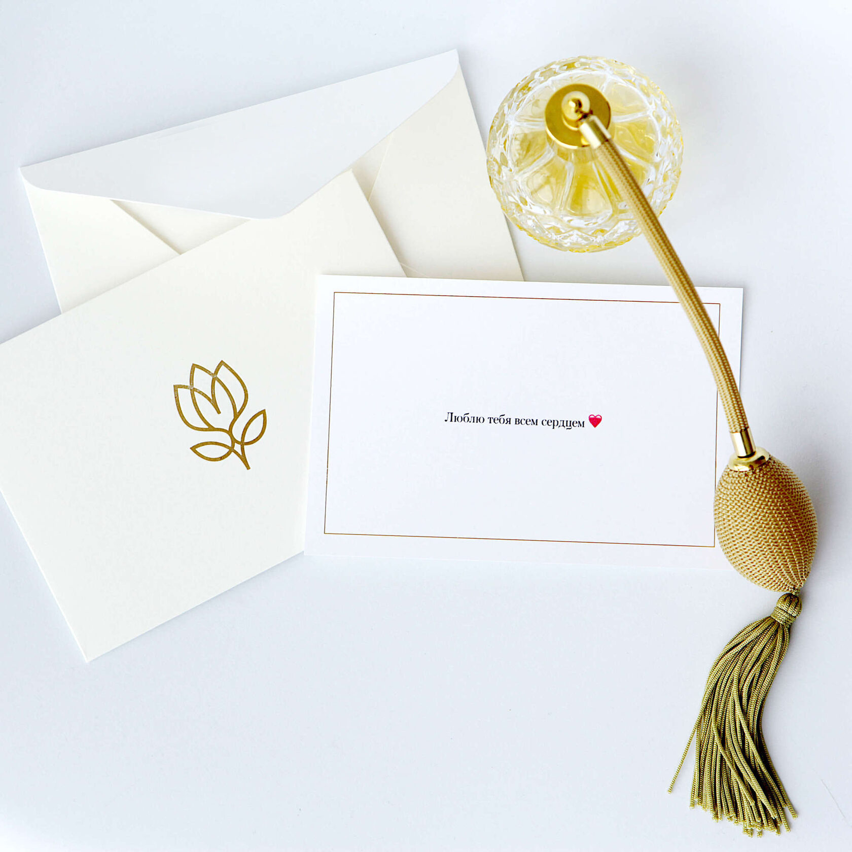 Фирменная, оригинальная открытка и конверт с золотым тиснением и ароматом Montale.